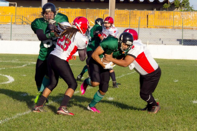 Frio de 15 graus em Cuiabá e mais de 4 mil pessoas nas arquibancadas. Esse foi o cenário da quarta partida do Cuiabá Arsenal pelo Campeonato Brasileiro de Futebol Americano. O resultado foi uma esmagadora vitória contra os paulistas do Brasil Devitz por 42 a 0.O jogo aconteceu na tarde de ontem (10) no estádio Dutrinha em Cuiabá. No final da partida, jogadores e a torcida dançaram juntos o hit do momento, ‘O show das Poderosas’, da cantora Anitta. O clipe foi gravado pelo time para atrair a atenção dos fãs para o jogo em casa.