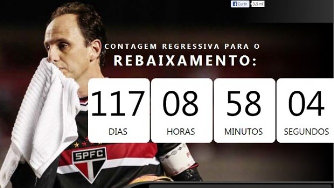Na pior fase de sua história, o São Paulo já virou alvo de inúmeras piadas na internet.A mais recente é um site criado na internet que tem um relógio com contagem regressiva para o possível rebaixamento do clube tricolor.